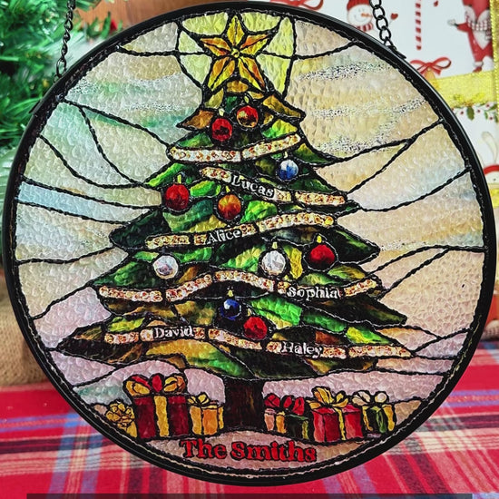 Merry Christmas - Personalized Family Stained Glass Suncatcher