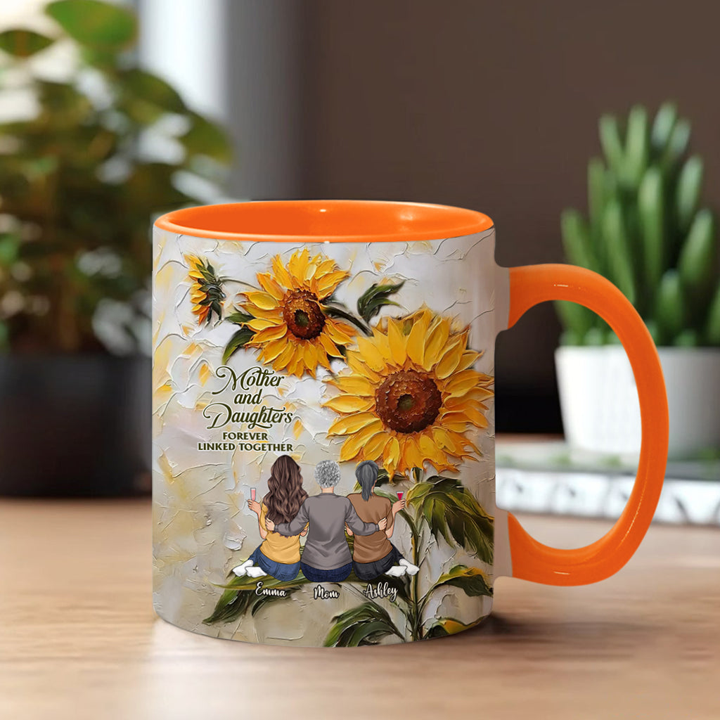 Mother And Daughters Forever Linked Together - Personalized Mother Accent Mug