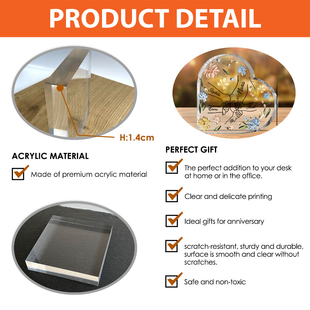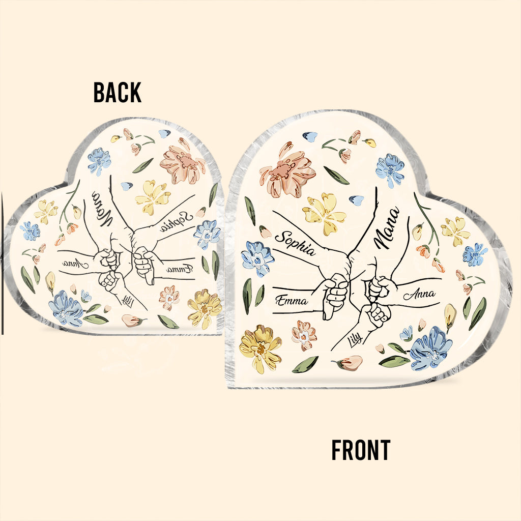Mother Children Holding Hands Pastel Floral Pattern - Personalized Mother Custom Shaped Acrylic Plaque