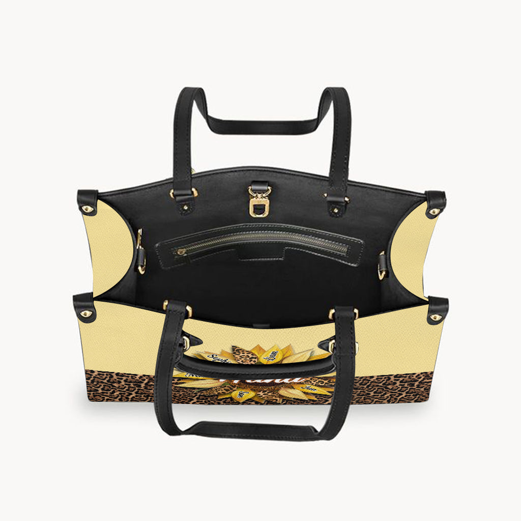 Nana Mom Auntie Family Sunflower - Personalized Grandma Leather Handbag