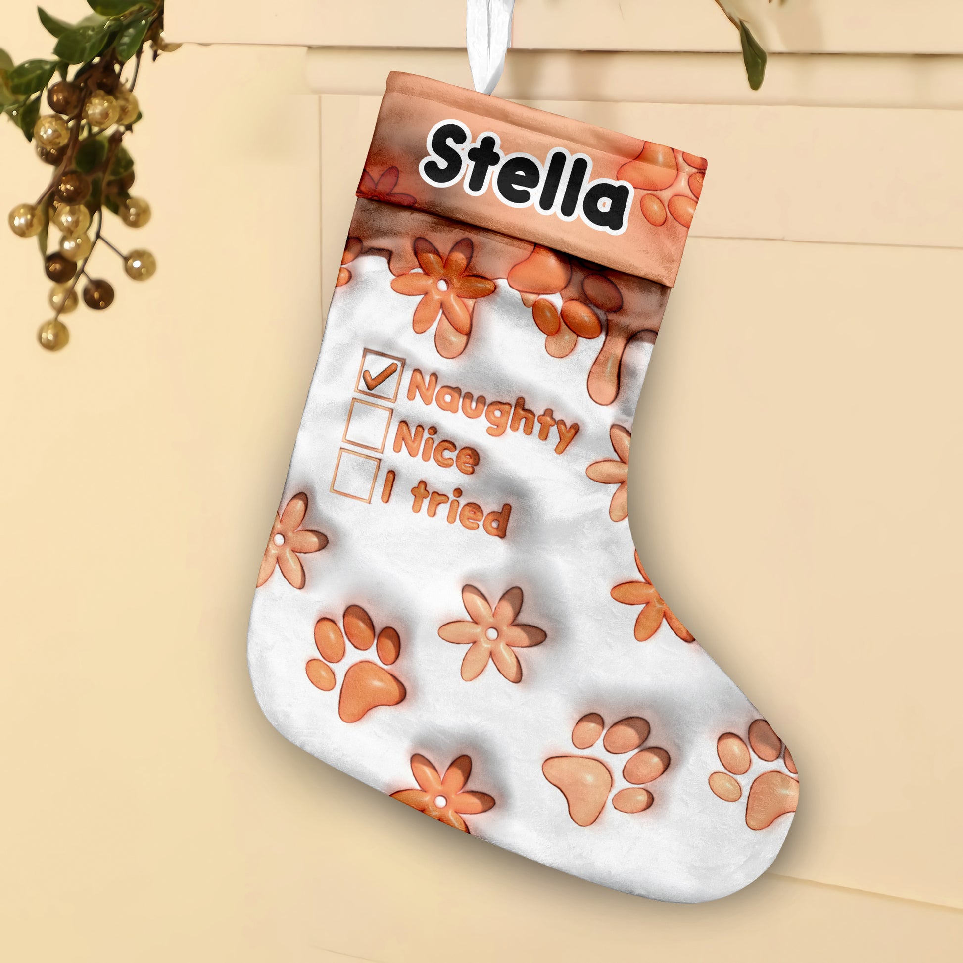 Naughty Nice I Tried - Personalized Dog Christmas Stockings