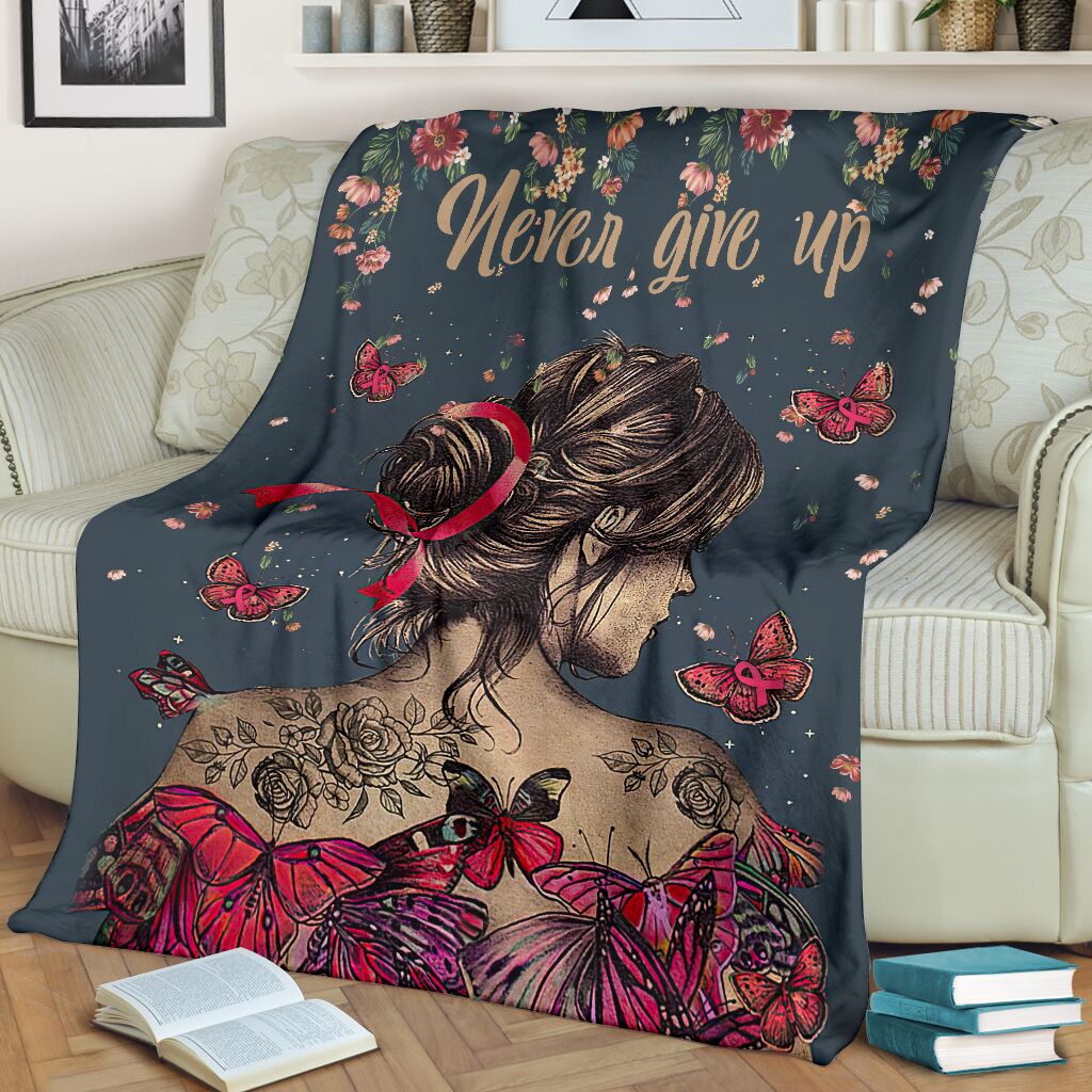 Never Give Up Breast Cancer Awareness Blanket 0622