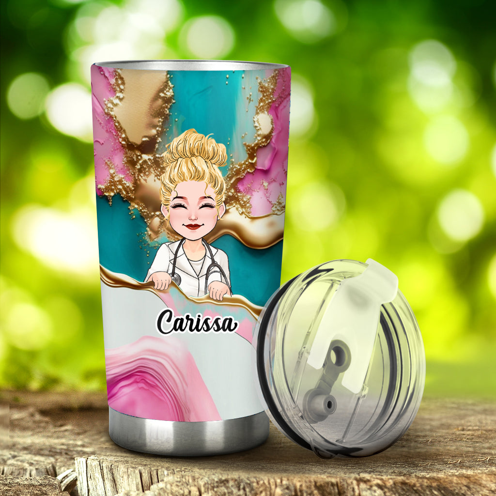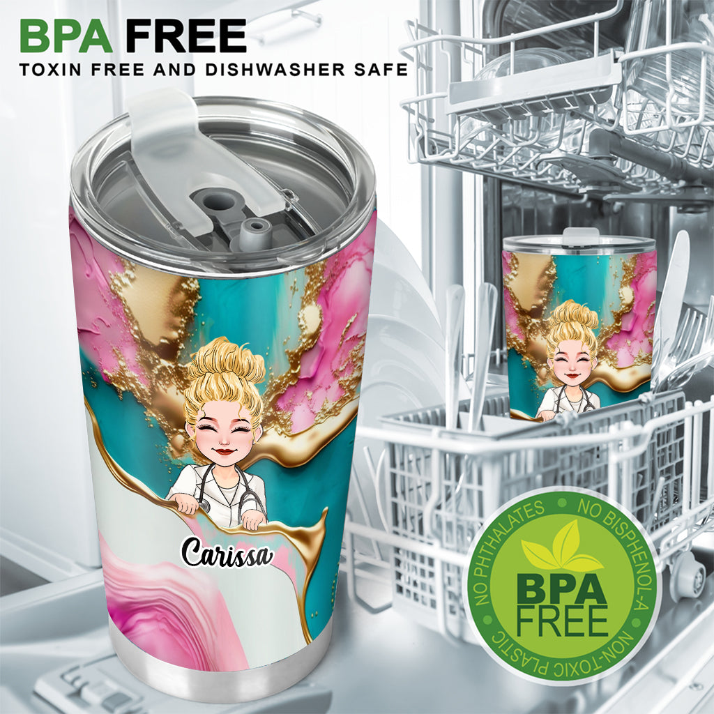 Nurse Life Pink Leopard Turquoise Blue - Personalized Nurse Tumbler