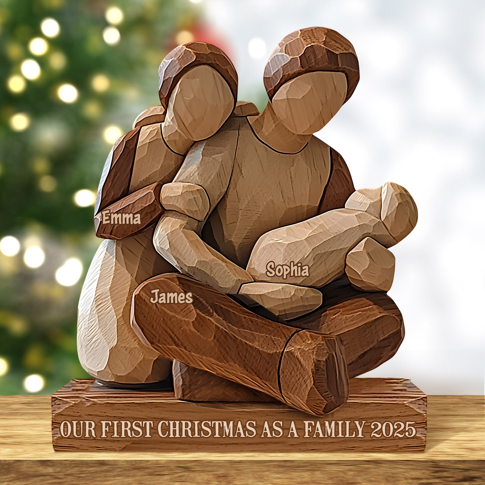 Our First Christmas as a Family - Personalized Family Custom Shaped Wood Plaque