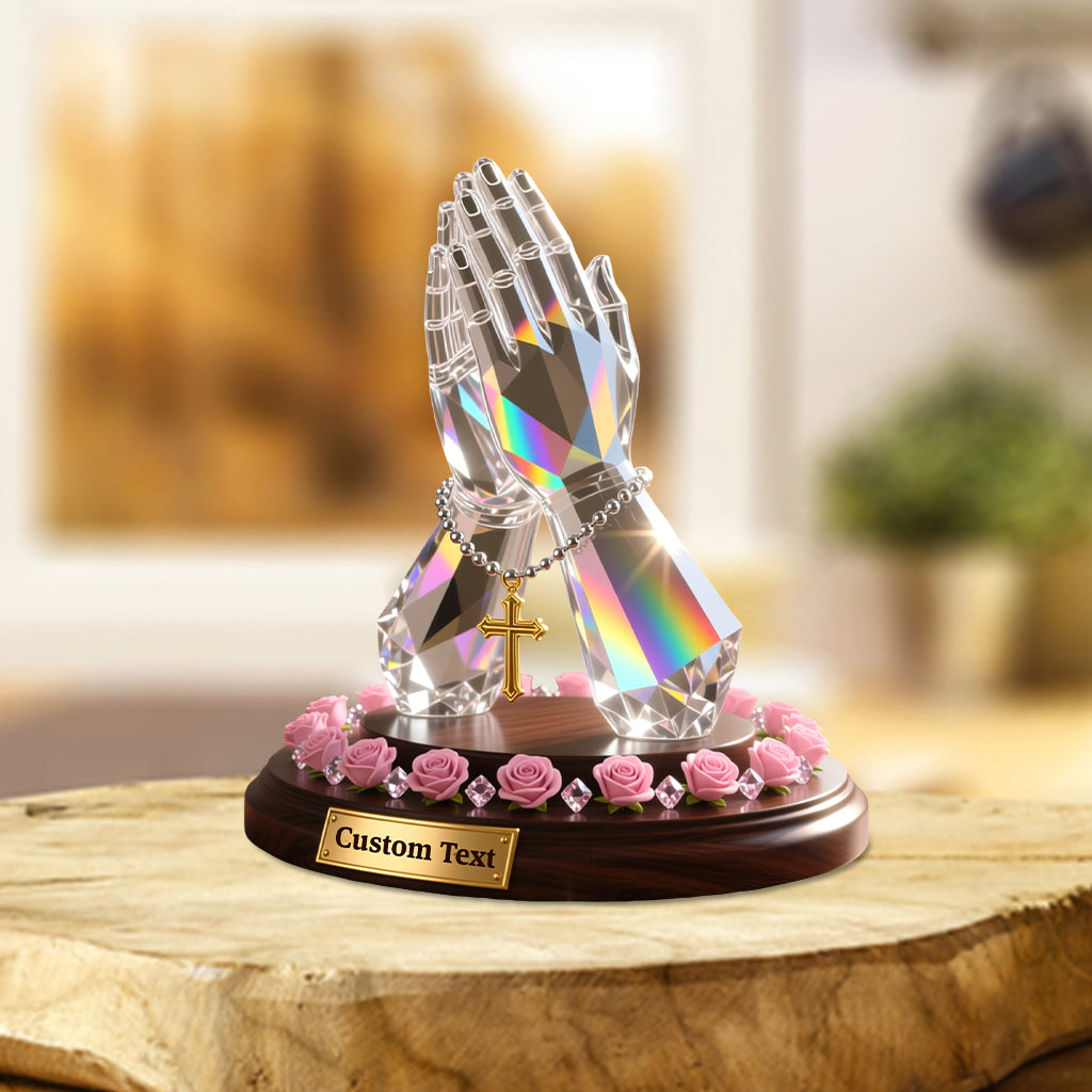 Praying Hand With Roses - Personalized Christian Custom Shaped Acrylic Plaque