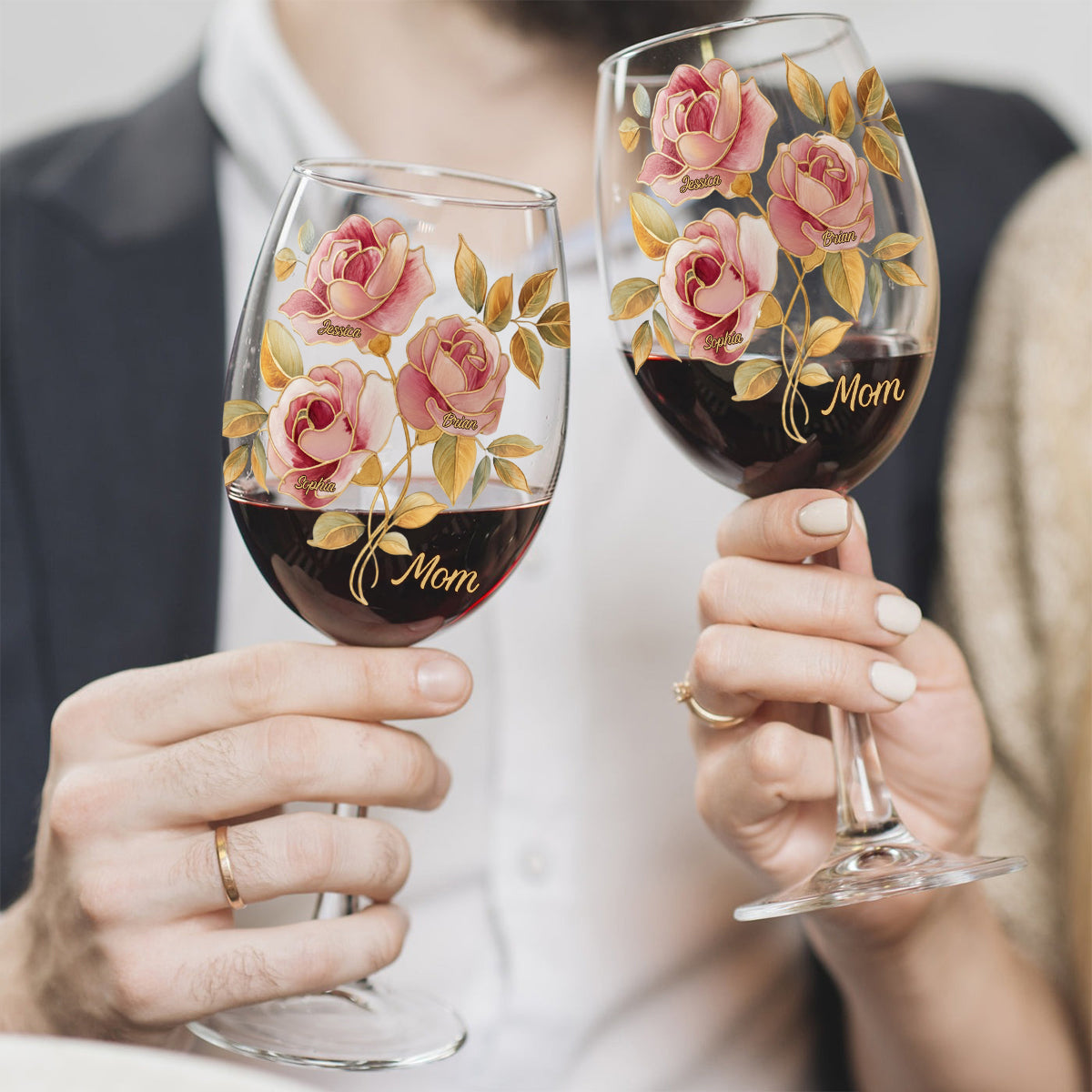 Rose Stained Glass Style Gift For Mother/ Mom/... - Personalized Mother Wine Glass With Long Stem