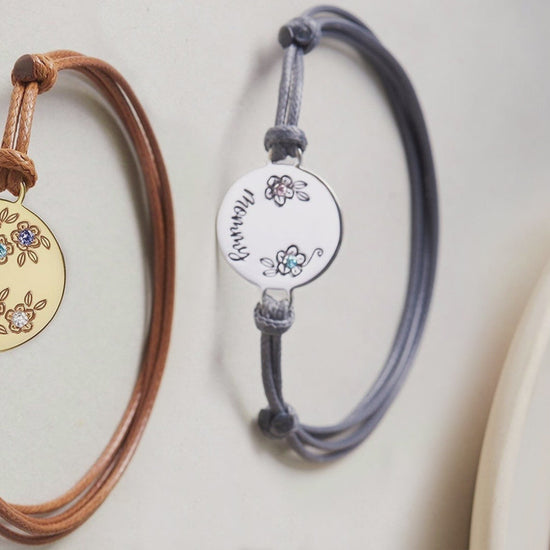 Round Pendant Bracelet With Birth Stones - Personalized Mother Round Pendant Bracelet