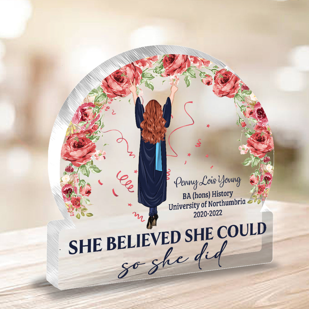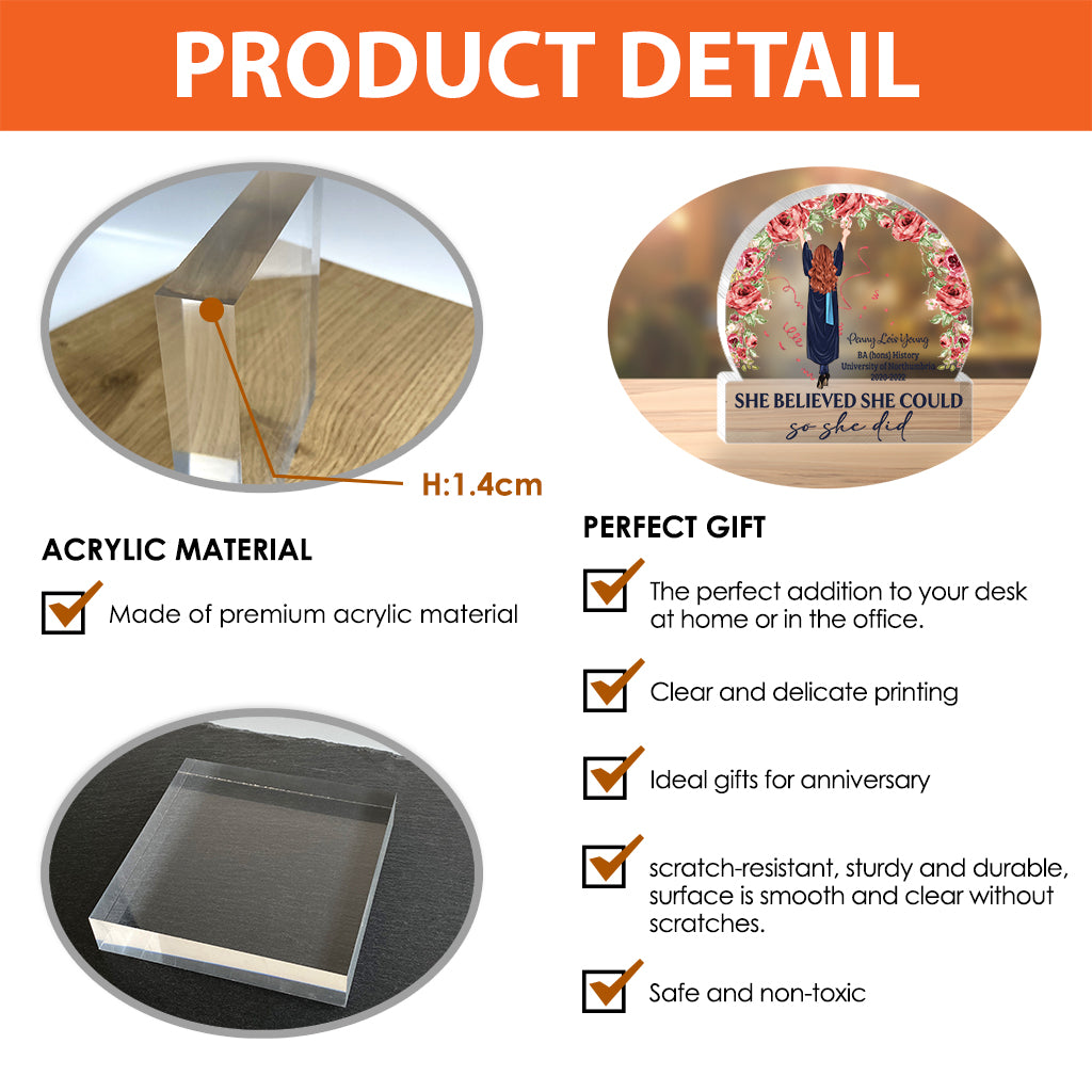She Believed She Could So She Did - Personalized Graduation Custom Shaped Acrylic Plaque