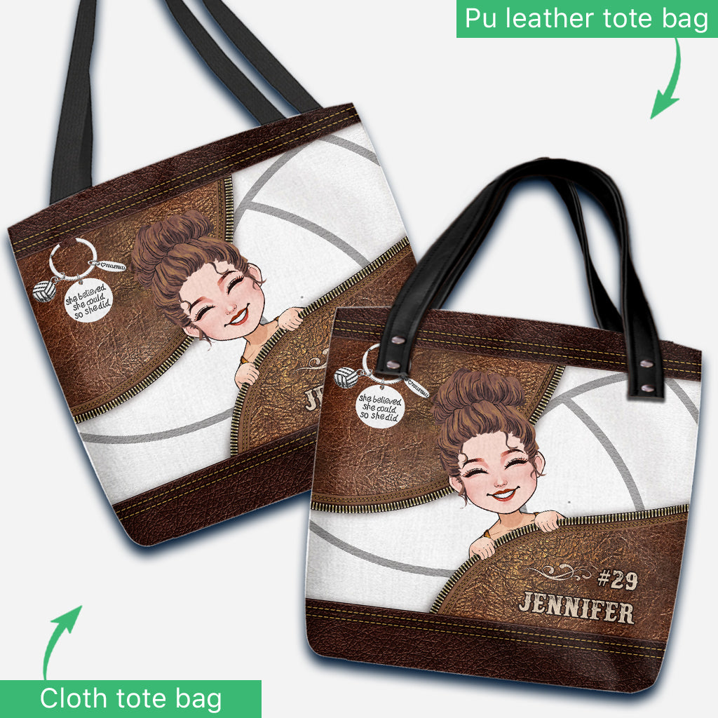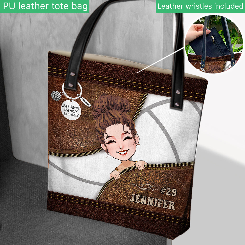 She Believed She Could So She Did - Personalized Volleyball Tote Bag