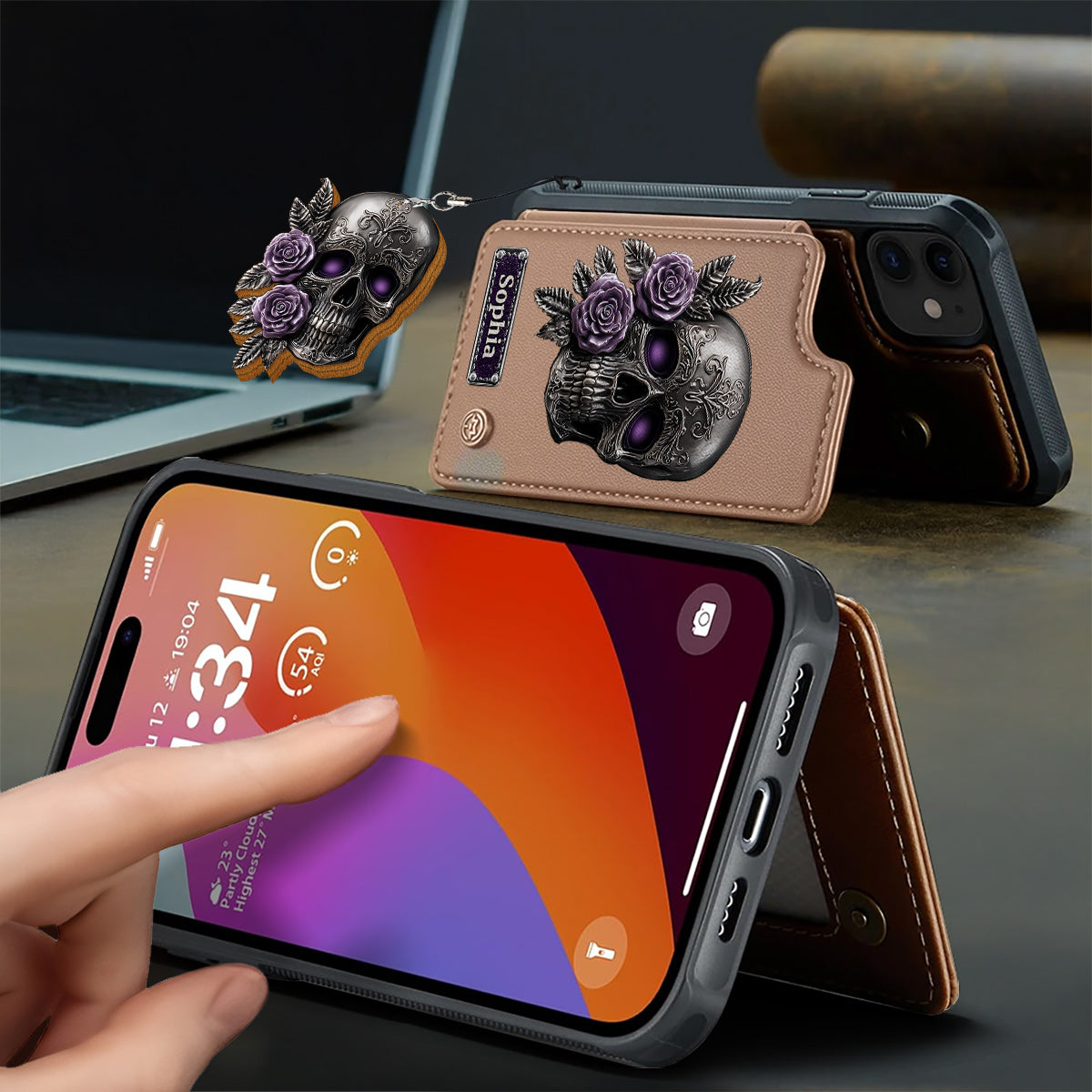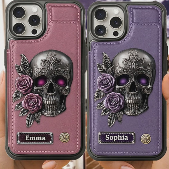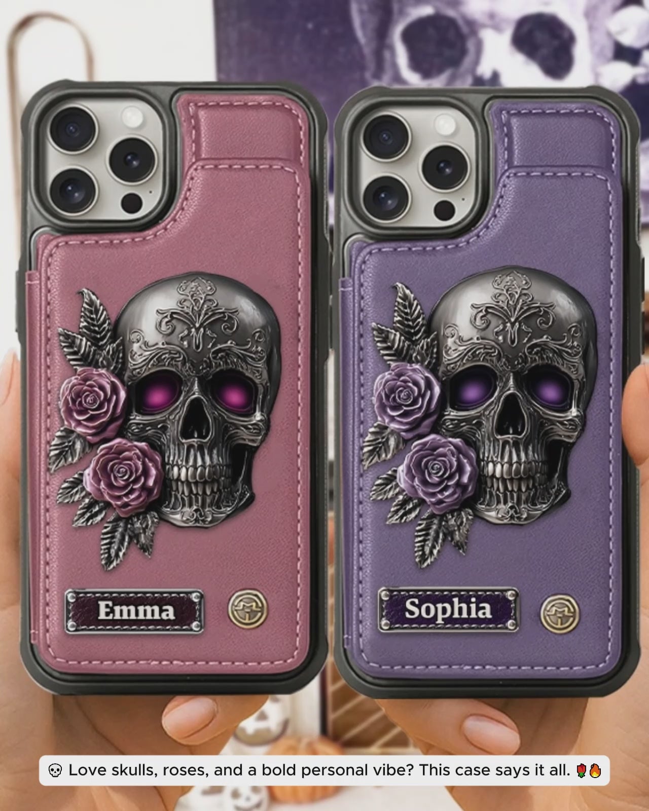 Skull And Roses - Personalized Skull Wallet Phone Case