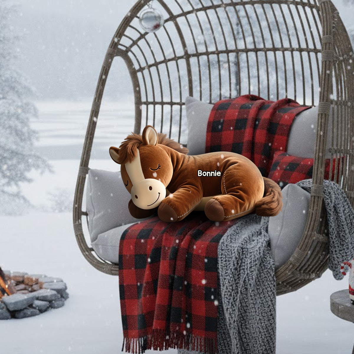Sleeping Pony - Personalized Horse Faux Fur Shaped Pillow