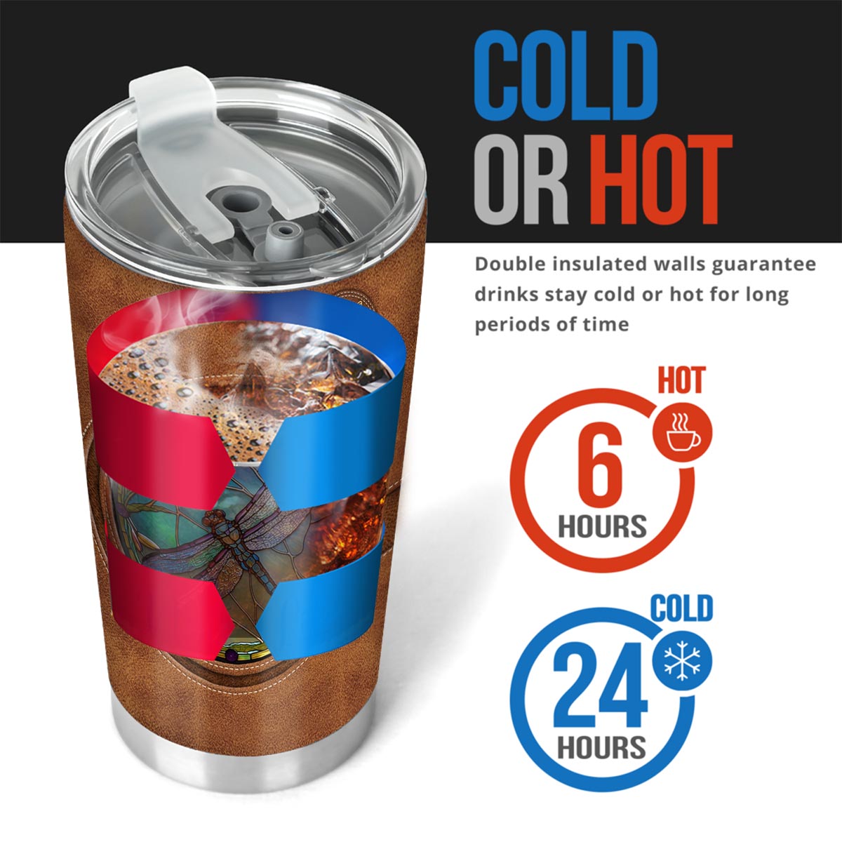 - Constructed with medical-grade stainless steel and double-walled vacuum insulation to keep your beverages hot or cold all day.