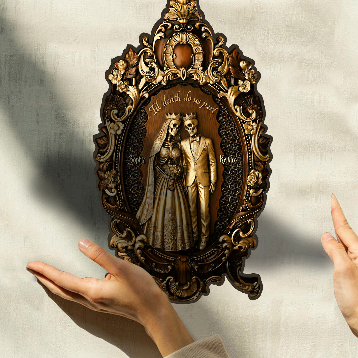 Til Death Do Us Part - Personalized Couple Custom Shaped Wood Plaque