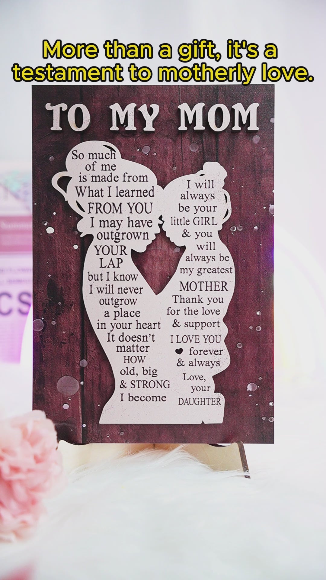 To My Mom Mother And Kid Silhouette - Personalized Mother 2 Layered Wood Sign / Wood Plaque