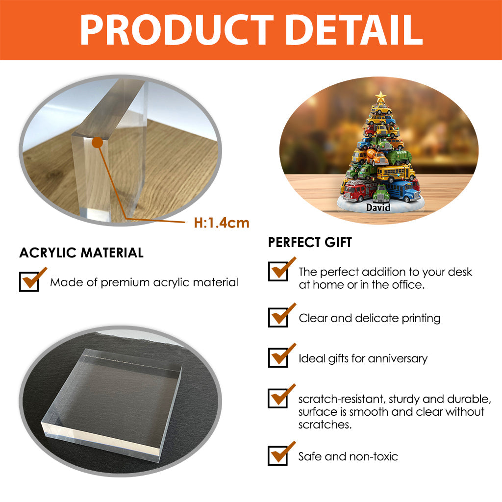 Trucks Christmas Tree - Personalized Kid Custom Shaped Acrylic Plaque