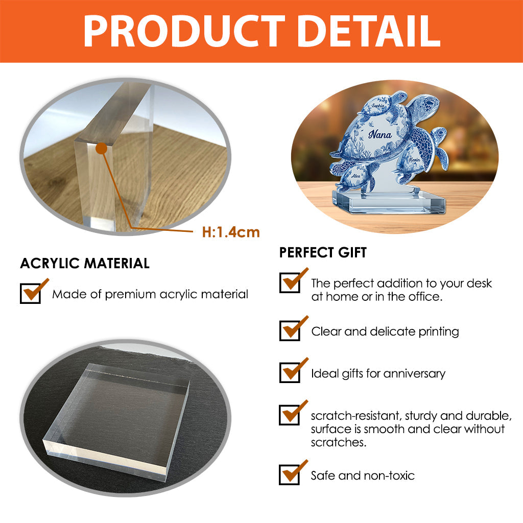 Turtle Gift For Grandma Mom - Personalized Mother Custom Shaped Acrylic Plaque