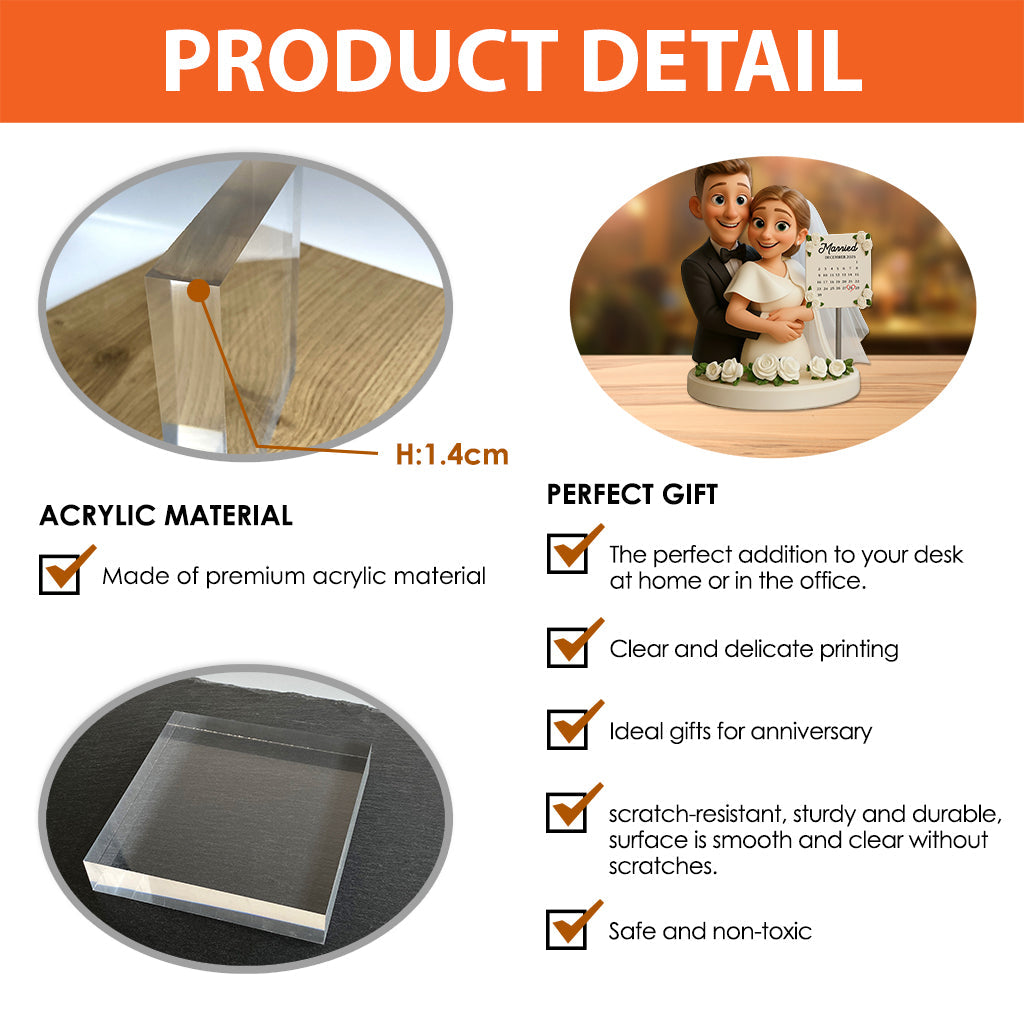 Wedding Happy Anniversary Gift Cartoonish Style - Personalized Couple Custom Shaped Acrylic Plaque