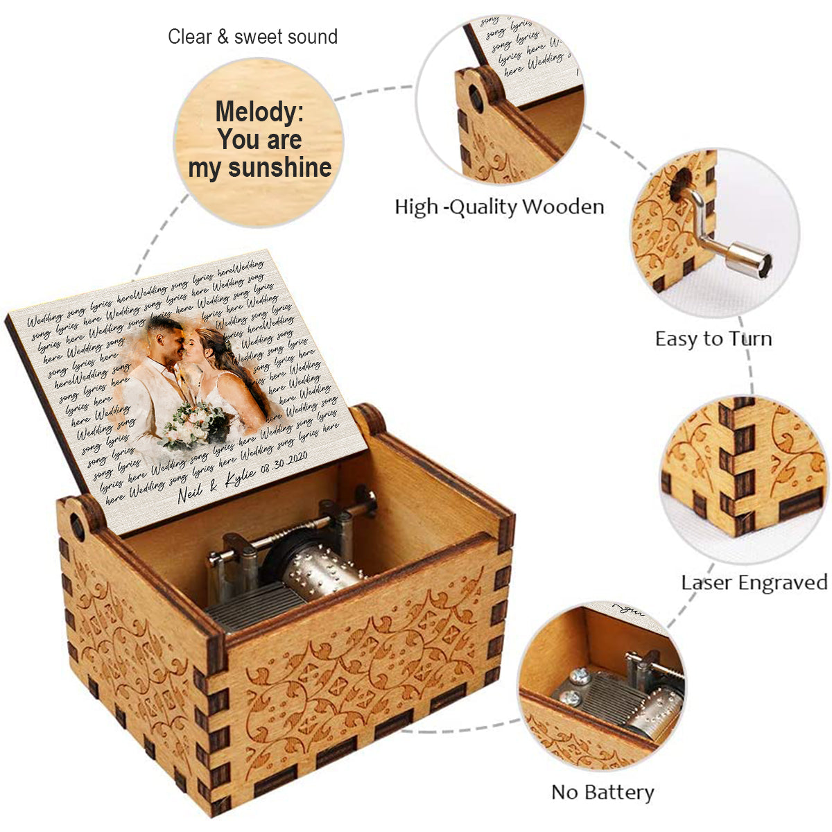 Wedding Song Lyrics With Personalized Watercolor Portrait - Personalized Husband And Wife Hand Crank Music Box
