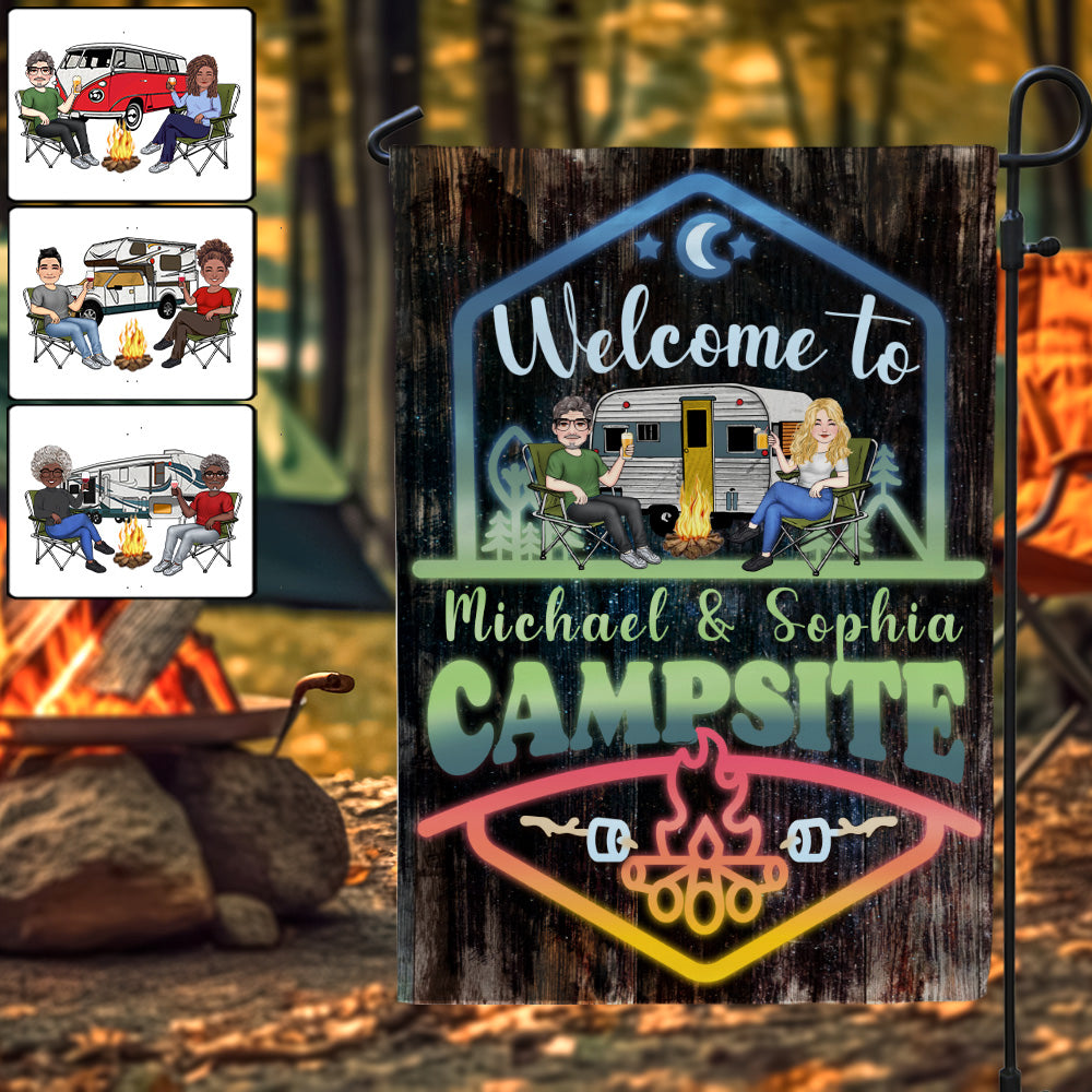 Welcome To Our Adventure - Personalized Camping Garden Flag