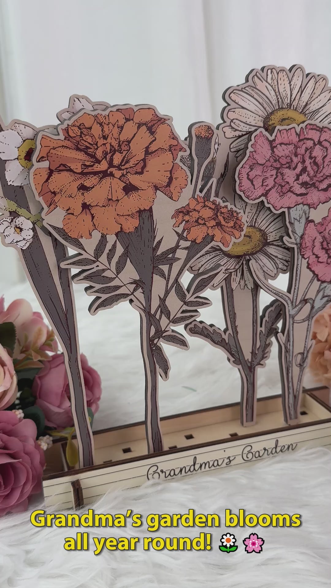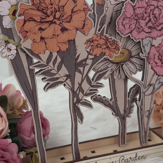 Laser cut and beautifully packaged, the garden planter and flowers are ready to be sent directly to the recipient of the gift or sent to you to share on the special occasion. Keep the package filler and use it as fill for your flowerbed.