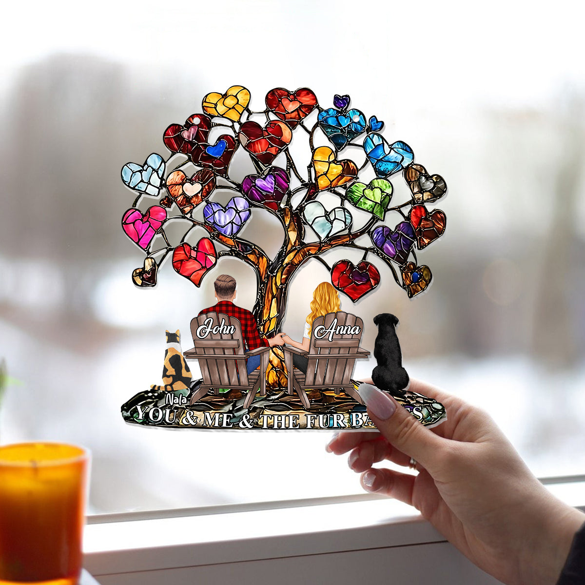 You And Me And The Fur Babies - Personalized Couple Window Hanging Suncatcher Ornament