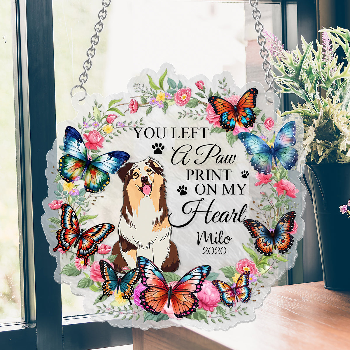 You Left A Paw Print On My Heart - Personalized Dog Window Hanging Suncatcher Ornament
