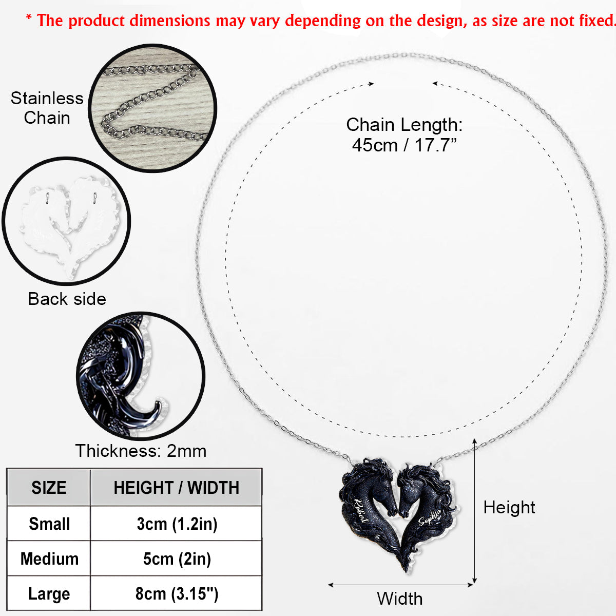 Add a personal touch to your jewelry collection with our Custom Shaped Pendant Necklace, crafted from durable stainless steel for long-lasting shine and style. This pendant is available in three sizes—3cm (1.18 inches), 4cm (1.57 inches), and 8cm (3.15 inches)—and features UV printing technology for vibrant, high-quality designs that stand the test of time.